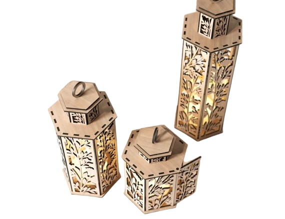 Elevate your wedding or special occasion with these elegant lanterns, featuring a delicate floral design laser-engraved into wood. Available in three different heights, they create a stunning layered effect when styled together. Simply add a tealight to let soft, romantic light shine through the intricate patterns—perfect for centerpieces, aisle accents, or reception décor.